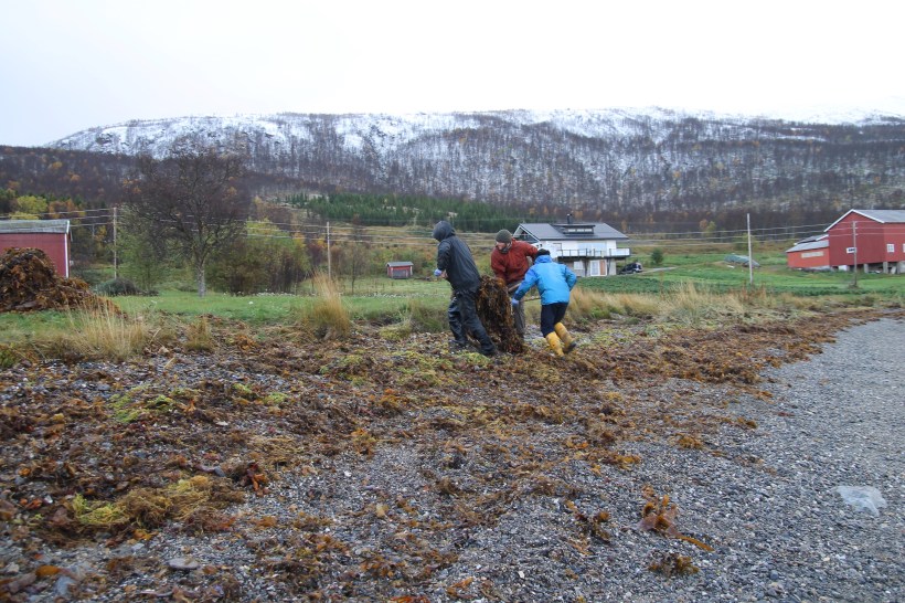 Another benefit of the storm was that seaweed was carried up on shore. We use seaweed to fertilize the soil in the potato field, so its important to collect it before the tide carries it out again.