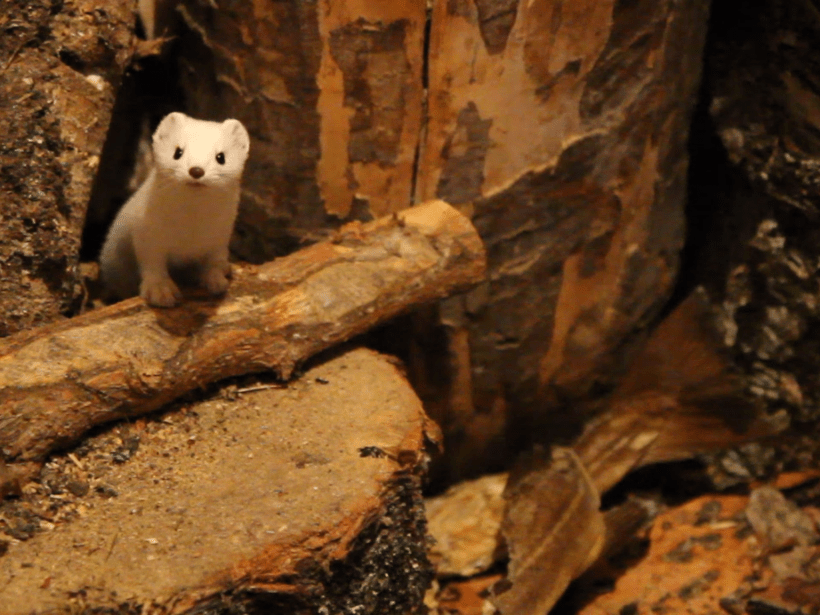 Playing with Herman, the ermine who lives in the wood shed,