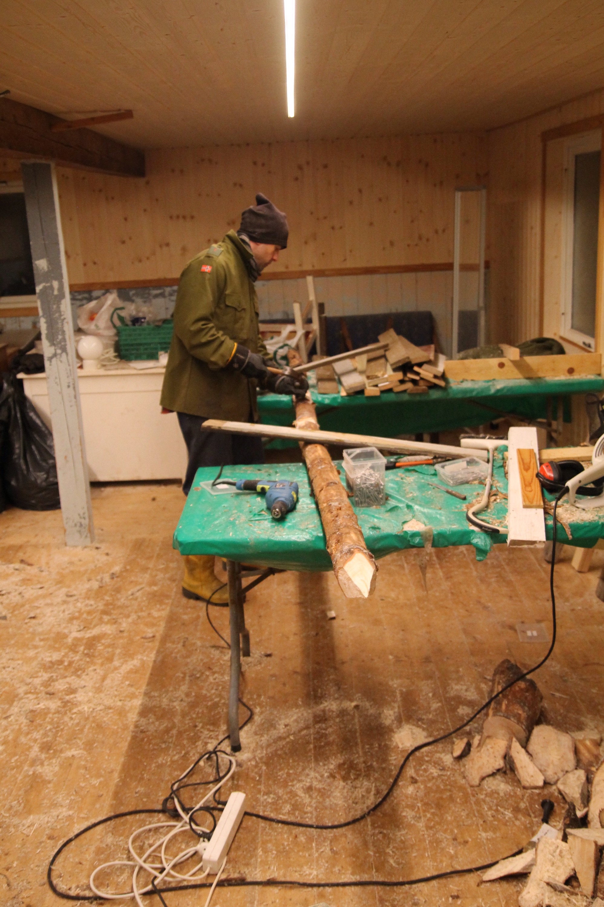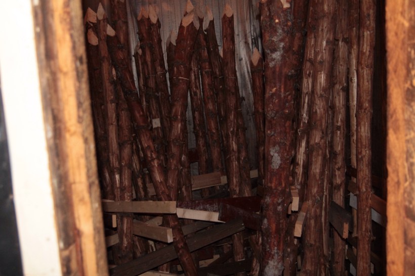 November was the quiet month. It was just the three of us at the farm, Tyler, Matteo and myself. Although we had a visitor named Jeremy (who has the coolest job in the whole world, and lives an hour away now) for about half of the time. We started doing a lot of work inside during November, the guys constructed crosses that will be used to keep the rasperry plants in the new field up. This was an incredible amount of work, as each tree had to be stripped, sharpened, and the cross-poles screwed in. Oh, and we needed 120 of them.