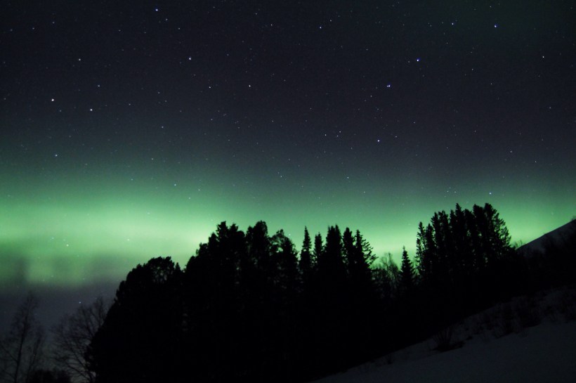 At 5 o’clock we were all soaked to the knees and quite ready to be done walking. Fortunately we came across an old cabin situated on the shore of a beautiful sandy beach, and we got to walk on flat ground for the first time in 7 hours. While we were resting on the beach, the Auroras came out to keep us company, and it was amazing how comforting it was to have them. This is where I took this picture, which I think may be my favorite photo Ive ever taken, and made the entire hike worth it.